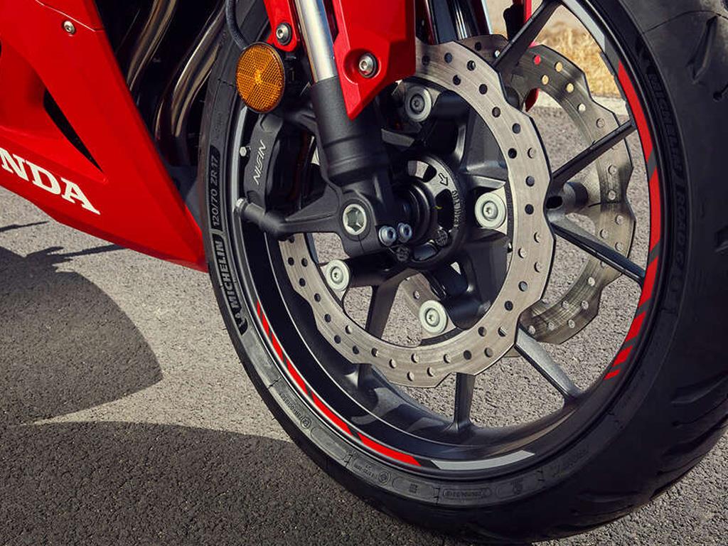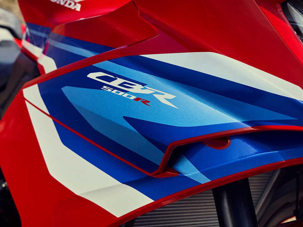 CBR. Three very special letters with a momentous history. Drawing heavily on the Fireblade for its design – with new paint and graphics straight out of pit lane – the CBR500R wears the same aerodynamic winglets for stability on corner entry and razor-sharp high-speed agility. From the aggressively designed headlights, which throw out a broad, penetrating beam for safer cornering at night, and sculpted-for-speed fairing right back to the tightly wrapped seat unit, this is a sporting benchmark.