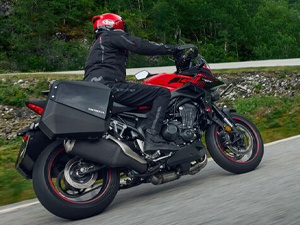 The race inspired sharp-edged bodywork flanks a large, 12.8L capacity fuel tank and comfortable, broad seat, distinctive asymmetric dual LED headlight (the indicators are also compact LED for 25YM) and positive LCD instrument display. An optional USB socket is now available.