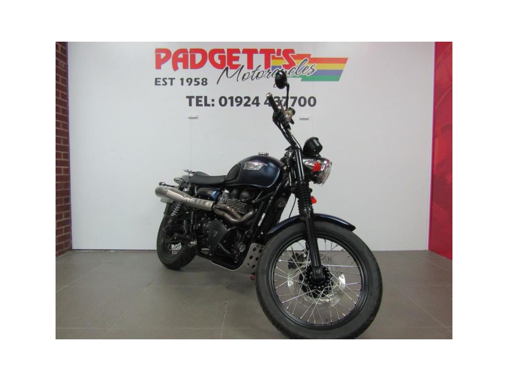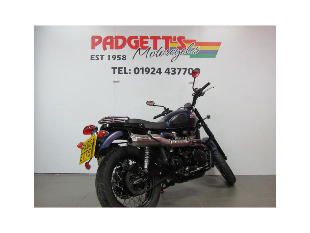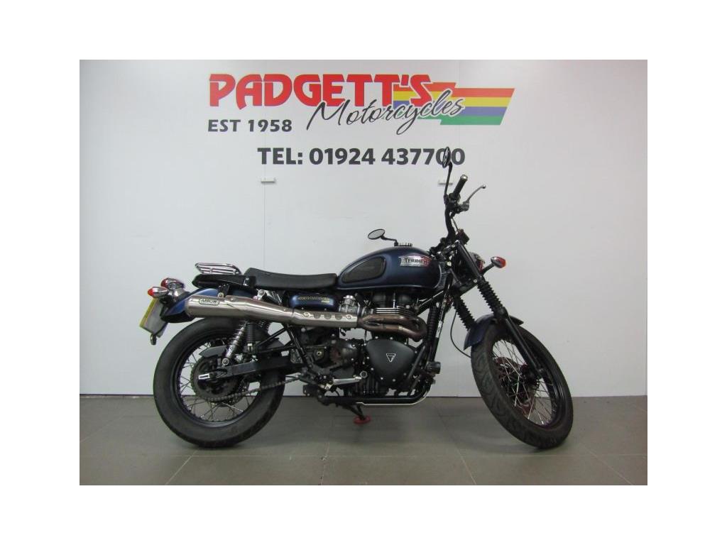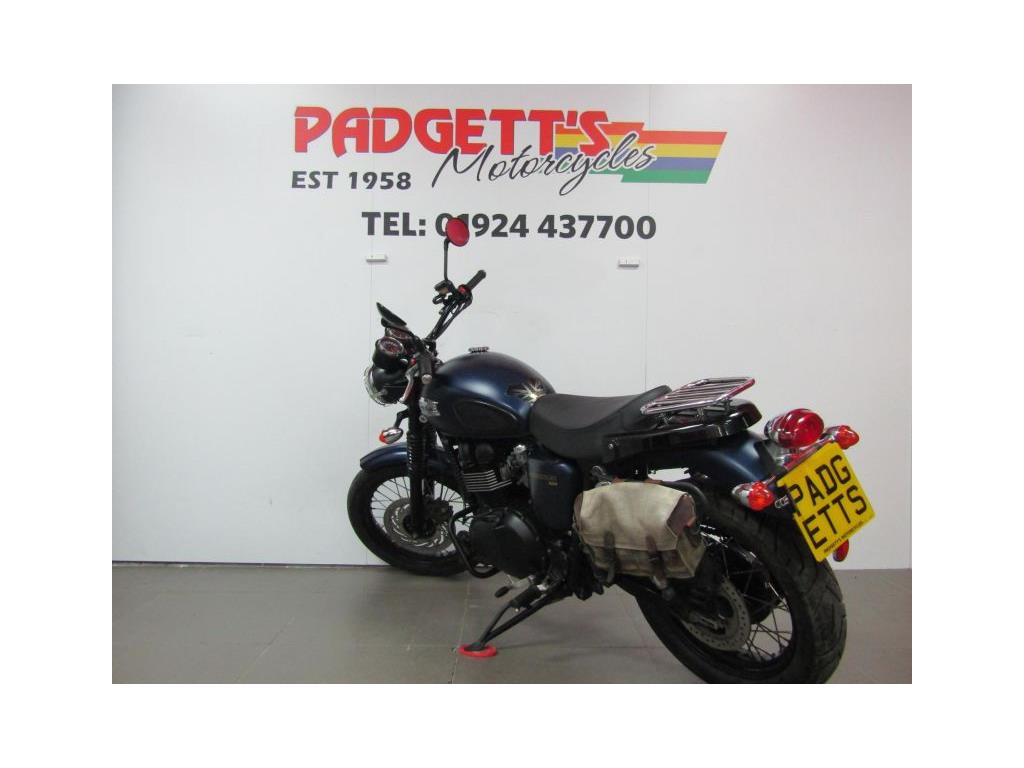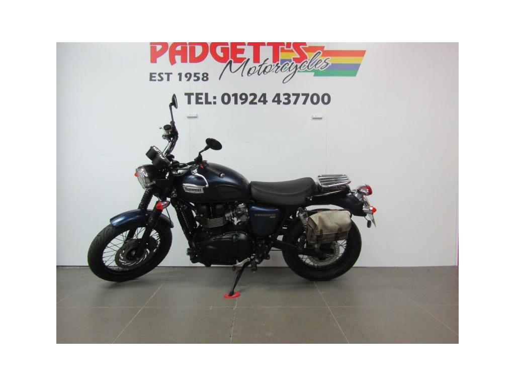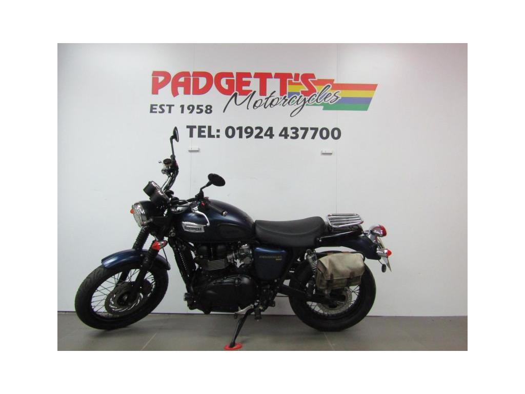We present here for sale this Triumph Bonneville Scrambler 900 in Blue. The bike has only covered 6,750 miles and is in good condition. The bike has been fitted with some superb extras including: Engine Bars, Fog Lights, Arrow Exhaust, Headlight Grill, Rear Rack and Side Bag. The bike comes complete with Original Owner’s Manual, 2 Keys, Service Book Showing Part Service History (7 Dealer Stamps last @ 6,748 miles on Jan-24) and Log book and Datatag’ed. The bike is available for viewing and is well worth a look. Finance is available and is subject to status. Part Exchanges welcome. Nationwide delivery can be arranged from as little as £75. Usual Dealer Facilities including a Large range of clothing, helmets & accessories. Call Padgett’s Motorcycles today to ensure that you don’t miss out; Suzuki Sales Centre 01924 609808, Honda Sales Centre 01924 437700 and Yamaha Sales Centre 01924 478491.