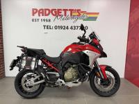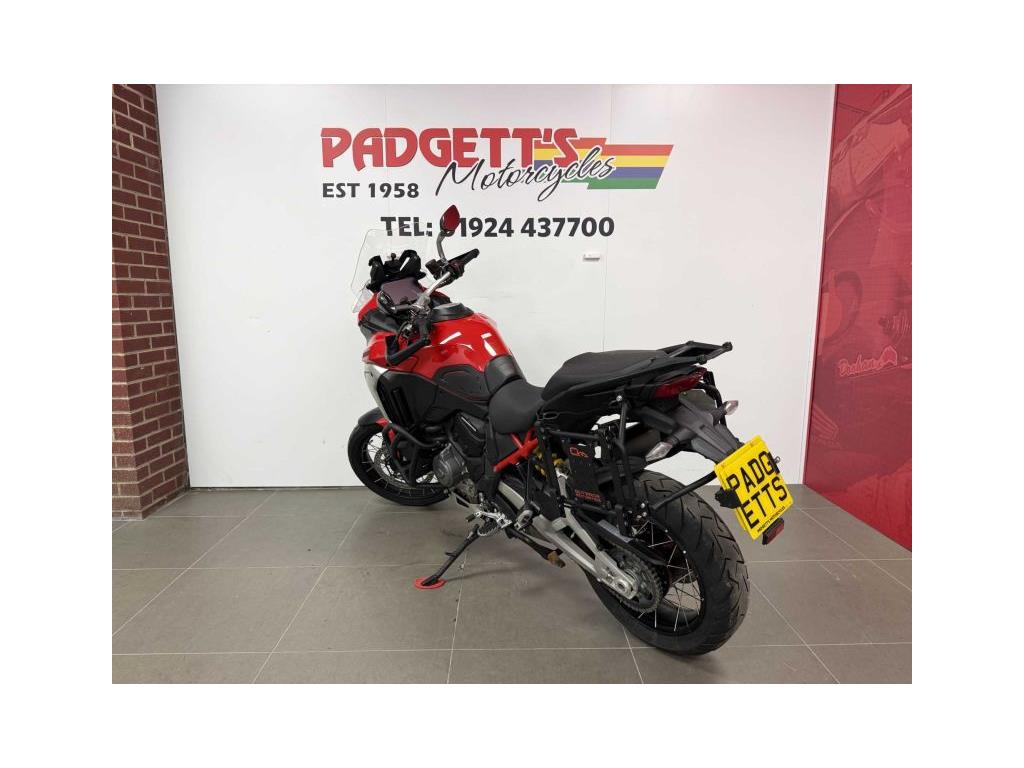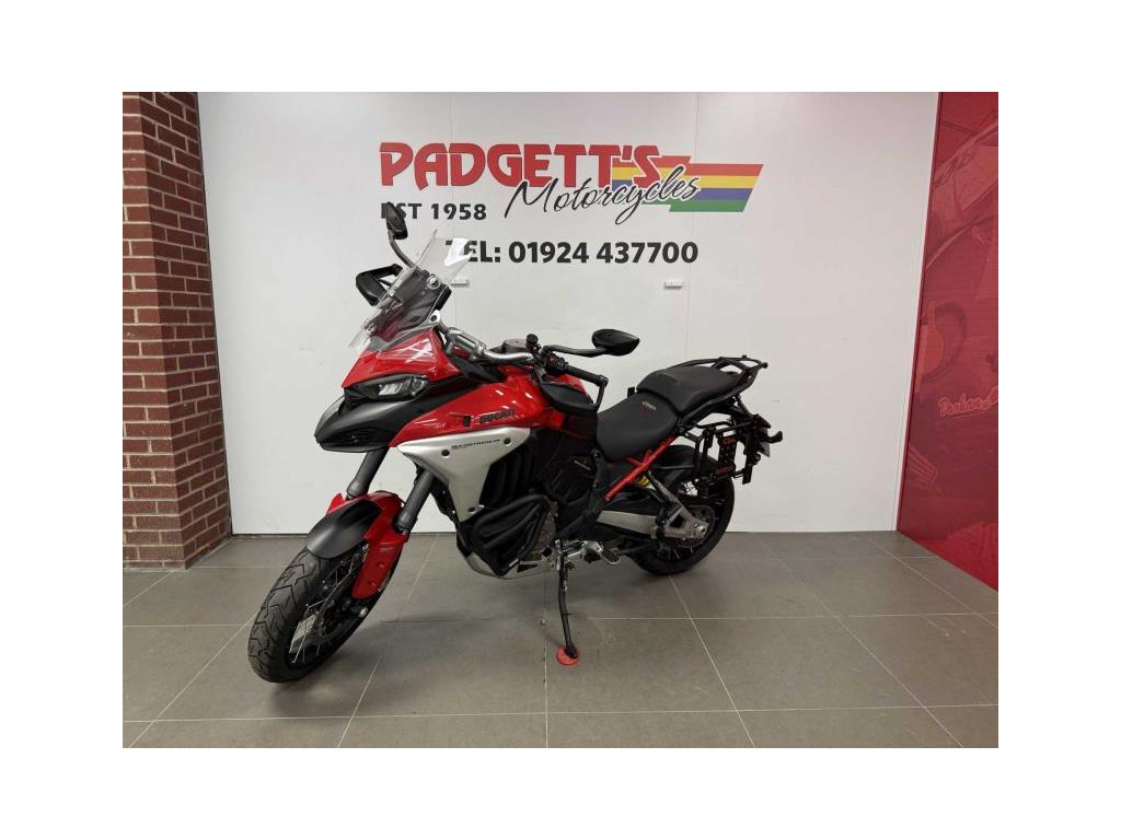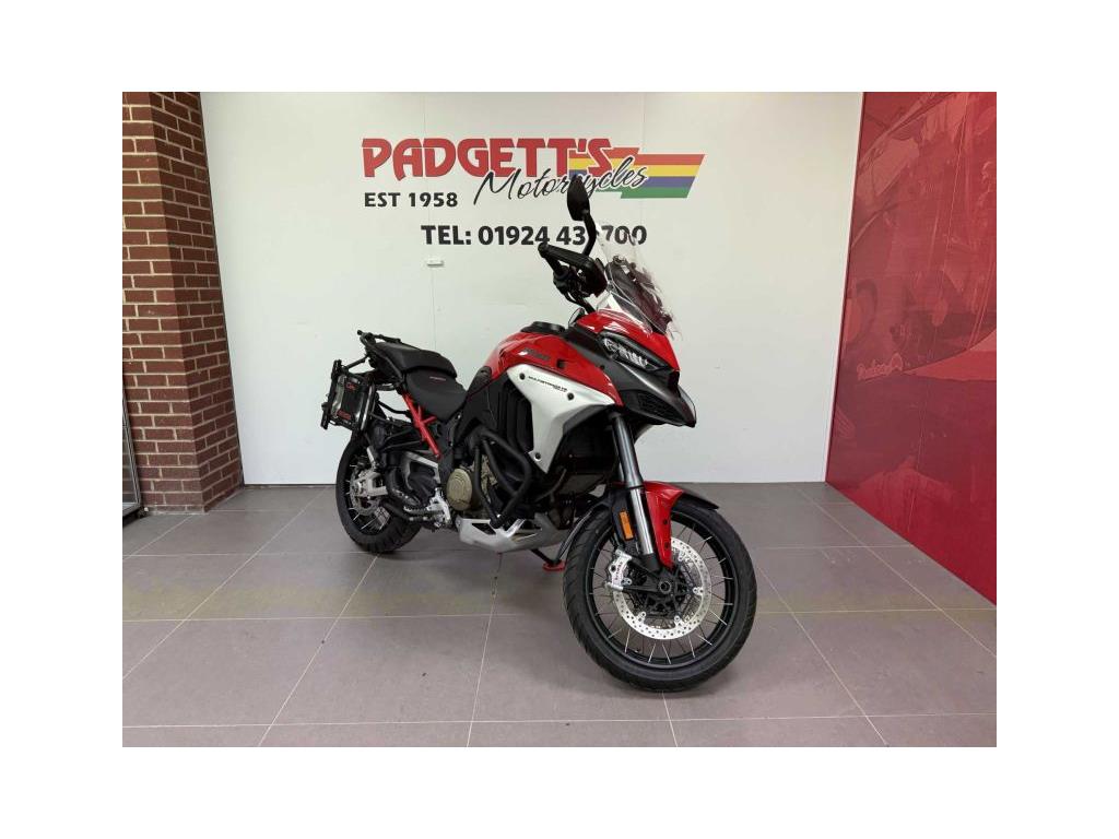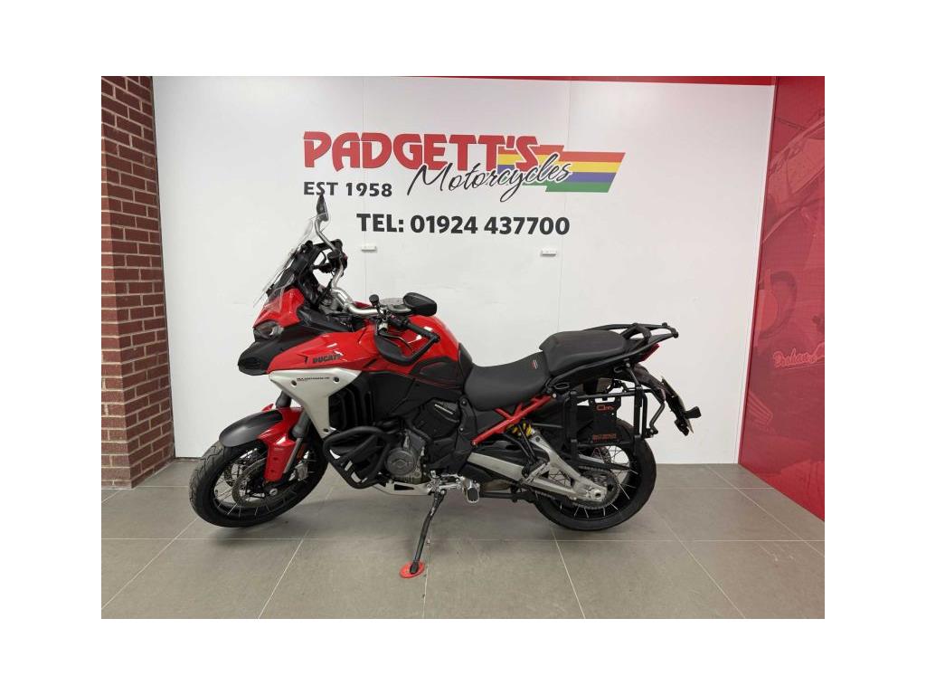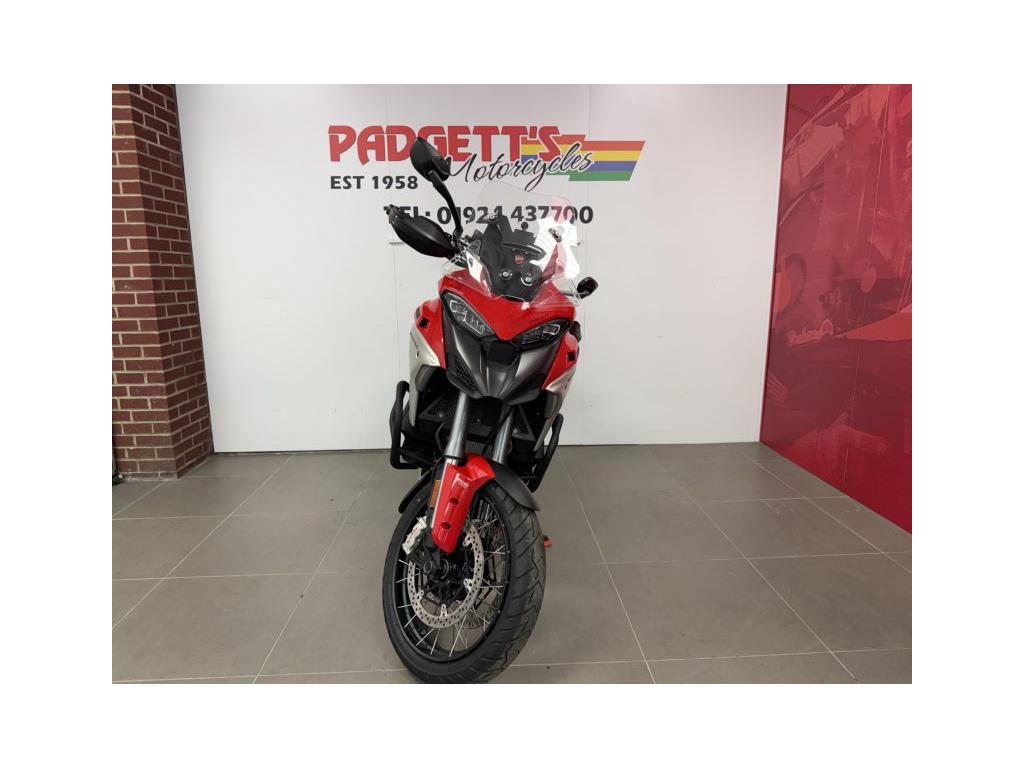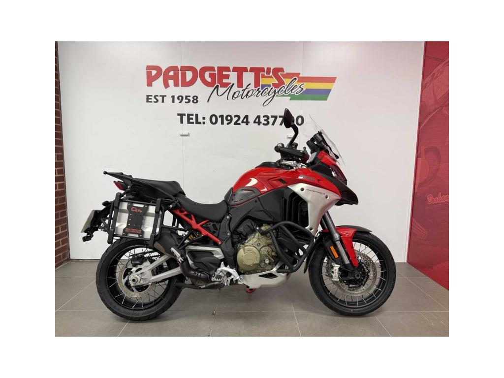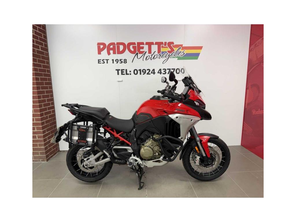 We present here for sale this Ducati Multistrada V4 Rally in Red. The bike has only covered 6,893 miles and is in great condition. The bike has been fitted with some great extras including: – Ducati Heated Seat, Ducati Heated Grips, Ducati Adaptive Cruise Control, Engine Bars, Radiator Guard, Outback Motortek Pannier Rails and Front Fender Extenda. The bike comes complete with Original Owner’s Manual, 2 Keys, Service Record showing Full Service History (3 Dealer Stamps – last @ 6736 miles in February 2026) and Log book. The bike is available for viewing and is well worth a look. Finance is available and is subject to status. Part Exchanges welcome. Nationwide delivery can be arranged from as little as £75. Usual Dealer Facilities including a large range of clothing, helmets & accessories. Call Padgett’s Motorcycles today to ensure that you don’t miss out; Suzuki Sales Centre 01924 609808, Honda Sales Centre 01924 437700 and Yamaha Sales Centre 01924 478491.