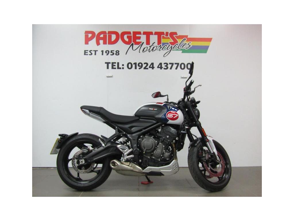 We present here for sale this Triumph Trident 660 – 67 Triple Tribute Edition. The bike has only covered 946 miles and is in great condition. The bike has been fitted with some superb extras including: – Fly Screen, Quickshifter and Evotech Radiator Guard. The bike comes complete with Original Owner’s Manual, 2 Keys, Service Book Showing Full Service History (First Service on 26/06/2025) and Log book and is Datatag’ed. The bike is available for viewing and is well worth a look. Finance is available and is subject to status. Part Exchanges welcome. Nationwide delivery can be arranged from as little as £75. Usual Dealer Facilities including a Large range of clothing, helmets & accessories. Call Padgett’s Motorcycles today to ensure that you don’t miss out; Suzuki Sales Centre 01924 609808, Honda Sales Centre 01924 437700 and Yamaha Sales Centre 01924 478491.
