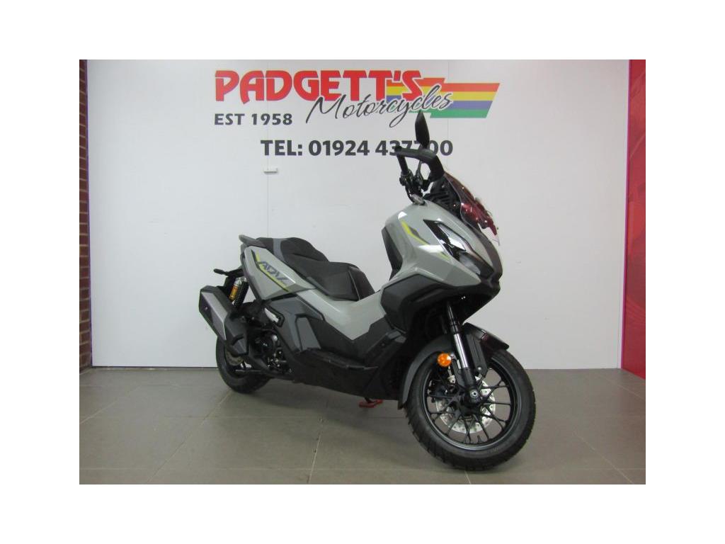 We present here for sale this 2026 Honda ADV350. Confidence. Feel it when you ride the ADV350 scooter. Sporty engine power meets a robust, smooth-running chassis and new rear suspension for added comfort to cover terrain with ease. With auto-signal cancellation, the ADV350 isn’t just safe – it’s functional. It’s not all about muscle though. The 5” TFT Meter lets you gauge your ride in stunning clarity and keeps you connected with Honda RoadSync integration for access to phone calls, music and navigation. The ADV350. You know what it can do. Experience the ADV350, where big scooter technology meets adventure DNA from our X-ADV. Weighing just 186kg, it’s equipped with a strong engine for effortless urban travel. Enjoy a smooth ride with long-travel RR rear suspension, providing better performance and enhanced comfort. The ADV350 handles light off-road paths and unpaved tracks with ease, thanks to its extra ground clearance and block-pattern tyres. Wherever your day leads, the ADV350 is ready to take you there. While tough adventure styling sets the ADV350 apart, we’ve ensured it stays true to what big scooters are all about comfort and practicality. The seat, contoured for support, is just 795mm high, making ground reach easy. There’s 48L of under-seat storage—enough for two full-face helmets—plus a glovebox with a USB Type-C socket. Under-seat LED lighting improves visibility in the compartment at night. The screen adjusts in four stages, allowing you to tailor the height and angle to your needs. Set high, it reduces fatigue by directing air around your shoulders on longer journeys. Set low, it allows a cooling breeze, perfect for city rides. Ready to go? Just keep the Smart Key in your pocket—it arms the ignition system, opens the seat, and operates the optional Smart Top Box, locking it as you walk away. The 5-inch TFT meter adds a premium touch, providing clear, advanced digital information at a glance. Stay connected on the move with Honda RoadSync, linking your Android™ or iOS™ device for calls and music. All lighting is LED, led by aggressive dual headlights, with Emergency Stop Signal (ESS) and Auto Signal Cancellation, ensuring you’re seen and safe on the road. The bike is available for viewing and is well worth a look. Finance is available and is subject to status. Part Exchanges welcome. Nationwide delivery can be arranged from as little as £75. Usual Dealer facilities including a Large range of clothing, helmets & accessories. Call Padgett’s Motorcycles today to ensure that you don’t miss out; Suzuki Sales Centre 01924 609808, Honda Sales Centre 01924 437700 and Yamaha Sales Centre 01924 478491. PLUS £121 OTR FEES