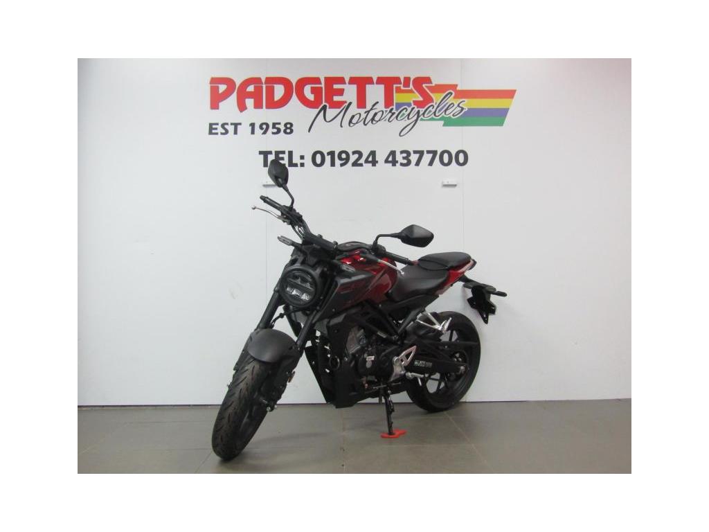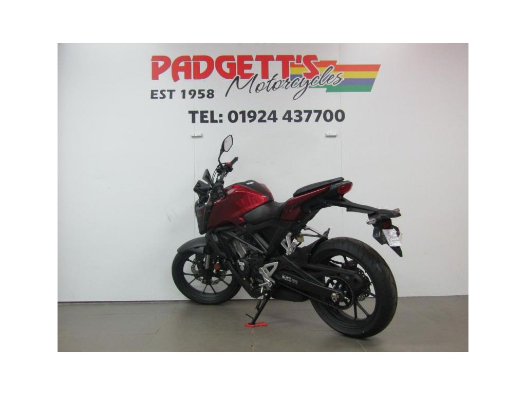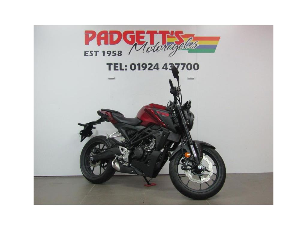 We present here for sale this Honda CB125R. The CB125R packs concentrated performance into a stylish silhouette, offering an exciting riding experience for new riders. A small sibling of the awesome CB1000R – and therefore a member of the Neo Sports Café family – it makes an instant statement with bold styling enfolding a tubular steel frame. A state- of-the-art LCD dash and full LED lighting are premium features, but what will really get your attention is the extra power of the new 125cc DOHC engine and suspension precision of Showa SFF-BP USD forks. With an emphasis on minimalism, the more you ride the CB125R, the more your confidence will grow. While its compact size makes it easy to manage, its big bike features ensure it’s the perfect introduction to real-world motorcycling. The all-new, DOHC 4V single-cylinder engine produces an extra 1.2kW and 1.6Nm peak power and torque driving through a slick-changing, six-speed gearbox. Matching the engine upgrade are 41mm Showa SFF-BP USD front forks – a high-quality specification you’ll find on our bigger bikes – that deliver pinpoint control and steering, alongside full-size tyres and radial- mount front brake caliper with Inertial Measurement Unit (IMU) ABS management. If you’re ready to go to the next level, this is it. The bike is available for viewing and is well worth a look. Finance is available and is subject to status. Nationwide delivery can be arranged from as little as £60. Usual Dealer facilities including a Large range of clothing, helmets & accessories. Call Padgett’s Motorcycles today to ensure that you don’t miss out; Suzuki Sales Centre 01924 609808, Honda Sales Centre 01924 437700 and Yamaha Sales Centre 01924 478491.