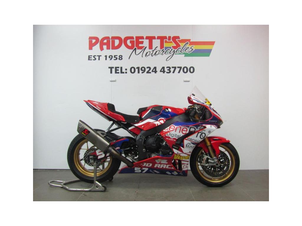 We present here for sale this high specification race specification Honda CBR1000RR-R SP. The bike is built to a high specification and has been fitted with the following extras: – HRC Wiring Loom, HRC ECU, HRC Quick Action Throttle, Akrapovic Exhaust System, Akrapovic Exhaust Hanger, Moto holders Clock Bracket, Captive Wheel Spacers, Captive Rear Calliper Bracket, HEL Brake Lines, PFM Detachable Rotor Front Discs, 520 Chain & Race Sprocket, Bonamici Rear Sets, Bonamici Brake Lever, Bonamici Brake Adjuster, Bonamici Clocks Cover, Bonamici Clips Ons, Bonamici Fuel Cap, Samco Radiator Hoses, SW Rear Thumb Brake, GB Racing Engine Protectors, RP Tank Pad, Bitubo Front Suspension, Ohlins Re-Valved Rear Shock, Bike Sports Development Switch Gear. The bike has recently been fitted with brand new Brembo Rear Calliper. The Front Brake Callipers and Front Brake Master Cylinder have just been serviced by Brembo with new racing brake fluid. The engine was recently rebuilt by Padgett’s Motorcycles less than 100KM’s ago (proof of what was done can be provided). The bike is fully serviced and lock wired ready to race. The bike was raced by James Skelding in the No Limits Racing Super Series 1000 and Superstock 1000 Series. Please note that the mileage on the advert is for advertisement purposes only – and is only related to the recent engine rebuild mileage. The bike is available for viewing and is well worth a look. Part Exchanges welcome. Nationwide delivery can be arranged from as little as £75. Usual Dealer Facilities including a large range of clothing, helmets & accessories. Call Padgett’s Motorcycles today to ensure that you don’t miss out; Suzuki Sales Centre 01924 609808, Honda Sales Centre 01924 437700 and Yamaha Sales Centre 01924 478491.