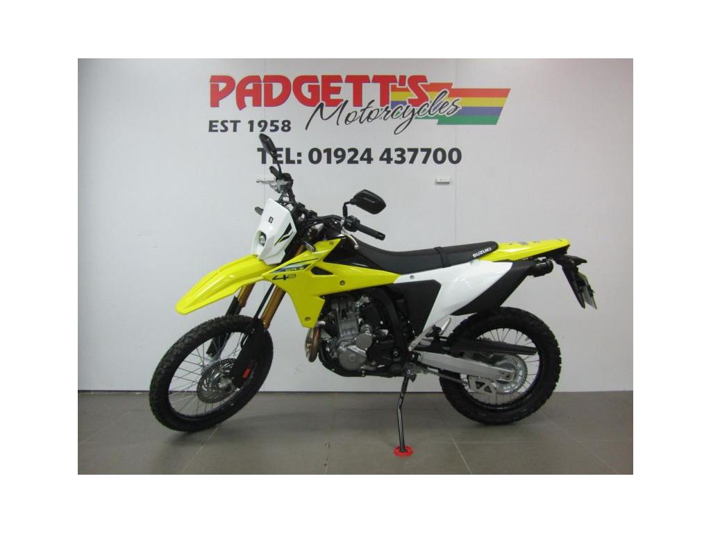 We present here for sale this Suzuki DR-Z4. DR-Z4S – YOUR WORLD. YOUR PLAYGROUND. Equipped with a punchy, new single-cylinder engine tuned for low-down torque and responsive power delivery, a new chassis for superior handling, and a cutting-edge electronics package tailored for off-road adventures, the all-new DR-Z4S is ready to turn your world into your playground. DUAL SPORT PERFORMANCE. The compact 398cc, liquid-cooled, DOHC engine that powered the original DR-Z400 became known for its performance, but also its robustness and reliability. One feature that helped enable it to develop this reputation was its dry sump lubrication system, which helped give greater levels of ground clearance. Suzuki has redesigned the engine for 2025, ensuring it hits all of its required legislation targets without sacrificing reliability and performance, making sure it produces an abundance of torque across its operating range and delivering a smooth, linear throttle response. The bike is available for viewing and is well worth a look. Finance is available and is subject to status. Part Exchanges welcome. Nationwide delivery can be arranged from as little as £75. Usual Dealer Facilities including a large range of clothing, helmets & accessories. Call Padgett’s Motorcycles today to ensure that you don’t miss out; Suzuki Sales Centre 01924 609808, Honda Sales Centre 01924 437700 and Yamaha Sales Centre 01924 478491.