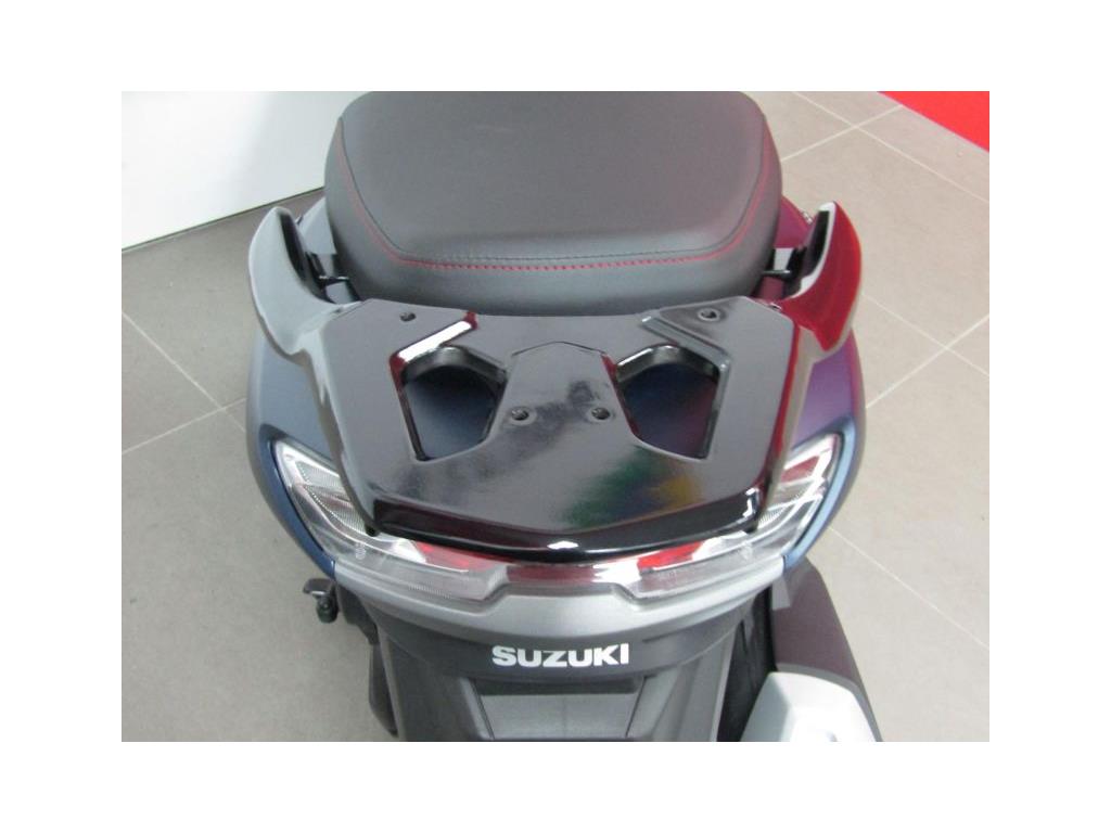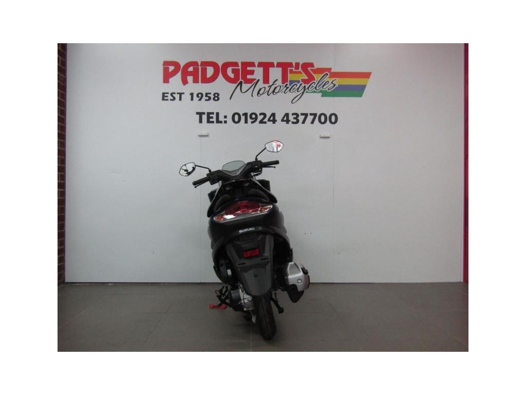 We present here for sale this Suzuki 2025 Burgman 125 Street EX. YOUR CITY. YOUR WAY. Luxury, sophistication and style the Burgman delivers them all. With its elegant appearance, intelligent features and economical Suzuki Eco Performance Alpha (SEP-a) engine this scooter means business. Boasting smartphone charging, start-stop technology, LED lighting, 21.5L underseat storage² and a standard rear carrier the Burgman will bringing you wherever you need to go in comfort and style. SMART CITY COMMUTER. SUZUKI ECO PERFORMANCE ALPHA (SEP-?). The Burgman Street 125EX is the first Suzuki to adopt Suzuki Eco Performance Alpha (SEP-a) engine technology. The result is an engine that features an outstanding level of environmentally responsible performance, both in terms of low fuel consumption 148MPG6 and low emissions 44g/km CO2, in WMTC mode testing. At the same time, it achieves the seemingly contradictory feature of excellent dynamic performance, with powerful acceleration and exciting off-the-line response. COMFORTABLE, STABLE AND HIGHLY MANOEUVRABLE. Designed to be comfortable to ride and provide stable handling while still being highly manoeuvrable. Seat height and floorboard space are designed to suit a wide range of riders and ensure riding comfort, even on longer rides. Straight-line and cornering stability are excellent, with high ground clearance that enables riders to lean into their turns. The Burgman proves its ability to excel in any urban riding situation. SPACIOUS STORAGE DESIGN. The underseat compartment² features a capacity of 21.5 litres and provides convenient space to store items and protect them from the elements. A pair of sturdy hooks³ let you hang various types of bags, including shopping bags, with greater convenience. The back hook can be locked to better secure items, and can be folded out of the way when not in use. REAR CARRIER WITH INTEGRATED GRAB BAR. A rear carrier with an integrated grab bar is standard equipment on the Burgman Street 125EX. The carrier can be used to mount the optional top case available as a genuine accessory. BODY-MOUNTED WINDSCREEN. The ergonomically designed windscreen shields you from wind and the elements to enhance comfort while adding an extra touch of design elegance. LIGHTWEIGHT FRAME. The product of repeated simulations that employed CAE technology, the underbone frame is built using large-diameter, thin, round material. Designed to minimise weight while maximising rigidity, this frame contributes to the Burgman Street 125EX’s outstanding fuel efficiency as well as to providing excellent straight- line stability and positive cornering performance. COMFORTABLE RIDE. The setting for the front suspension helps achieve a smooth ride quality, with the spring rate and operation of the front forks optimised for the front wheel weight distribution. Settings for both the forks and rear suspension are finely tuned to the tyres and wheels to achieve a fine balance of stability, road-holding performance, agile handling, and a comfortable ride, even when passing over uneven surfaces. ALUMINIUM WHEELS AND DUNLOP TYRES. The cast aluminium wheels are shod with tubeless Dunlop D307 N tyres. These combine with tuned suspension settings to deliver superior running performance, positive grip on wet surfaces, and a smooth ride. The rear wheel can also be removed without removing the muffler. This improves serviceability. COMBINED BRAKE SYSTEM. Suzuki’s Combined Brake System¹ supports well-balanced braking by distributing braking force to both the front and rear wheels when the left brake lever is operated. Stable stopping power is provided by a 190mm diameter disc brake in the front and a 130mm drum brake in the rear. LUXURIOUS SEATING. The Burgman Street 125EX affords both rider and pillion plenty of room with a long seat that is well-padded and designed to maximise comfort. Red stitching adds an elegant highlight. In addition, its carefully crafted shape makes it easy to plant both feet on the ground when stopped. Aluminium pillion footpegs fold out to offer