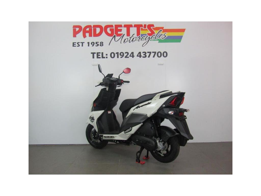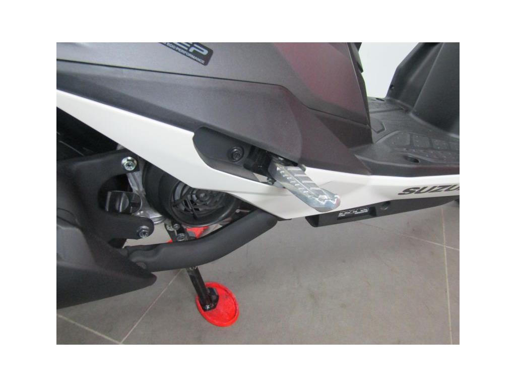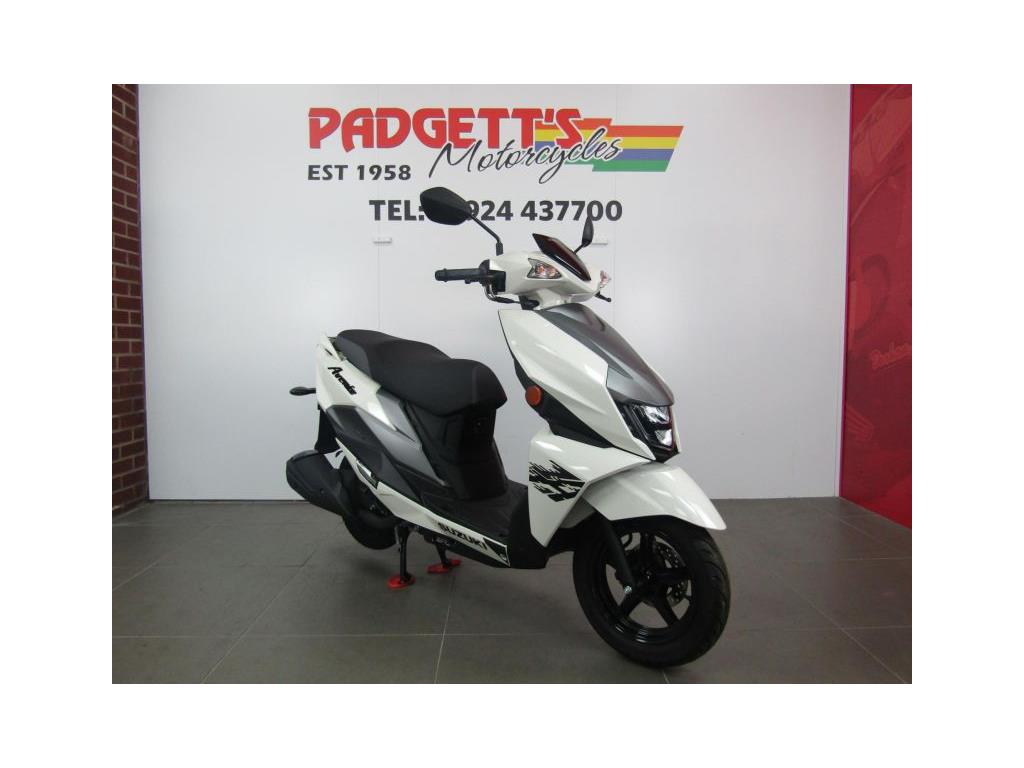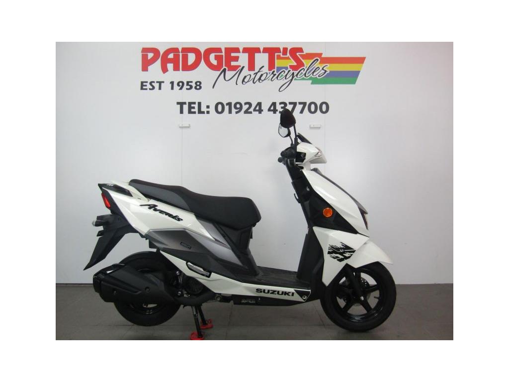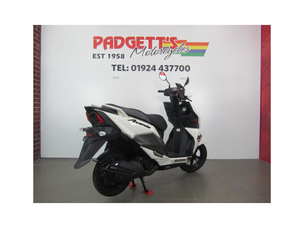 We present here for sale this Suzuki Avenis 125. The Avenis 125 excels as a sporty environmentally responsible scooter. Developed to comply with the stringent Euro 5 emissions standards, the Avenis 125 achieves outstanding fuel efficiency of 148.67MPG6 and CO2 emissions of a mere 44g/km in WMTC mode testing.* AGILE HANDLING AND COMFORT. Engineered to provide agile handling and comfort, the Avenis 125 is designed to maximise the potential of its SEP engine. Everything, from the design of the frame and selection of wheels and tyres to optimising suspension performance, the Combined Brake System (CBS)¹, is geared toward achieving this goal. The Avenis 125 proves its ability to excel in any urban riding situation. SPACIOUS STORAGE DESIGN. The underseat compartment² features a capacity of 21.5 litres and provides convenient space to store items and protect them from the elements. The covered left-side front compartment is large enough to accommodate a large-screen smartphone. The inner pocket on the front right side offers storage space large enough to hold a 500ml beverage or some other small item the rider may want to keep close at hand. A pair of sturdy hooks³ let you hang various types of bags, including shopping bags, with greater convenience. The back hook³ can be locked to better secure items, and can be folded out of the way when not in use. LIGHTWEIGHT FRAME. The product of repeated simulations that employed CAE technology, the underbone frame is built using large- diameter, thin, round material. Designed to minimise weight while maximising rigidity, this frame contributes to the Avenis 125’s outstanding fuel efficiency. It also provides excellent straight-line stability and positive cornering performance. AGILE HANDLING. The front suspension settings provide a smooth and comfortable ride, with the spring rate and operation of the telescopic front forks optimised for the front wheel weight distribution of the Avenis 125. Both the forks and rear suspension are finely tuned to deliver solid road-holding performance, agile handling, and a plush ride. ALUMINIUM WHEELS AND DUNLOP TYRES. The cast aluminium wheels are shod with tubeless Dunlop D307 N tyres. These combine with tuned suspension settings to deliver superior running performance, positive grip on wet surfaces, and a smooth ride. The rear wheel can also be removed without removing the muffler. This improves serviceability. COMBINED BRAKE SYSTEM. Suzuki’s Combined Brake System¹ supports well-balanced braking by distributing braking force to both the front and rear wheels when the left brake lever is operated. Stable stopping power is provided by a 190mm diameter disc brake in the front and a 120mm drum brake in the rear. Once parking up on the Avenis 125, a switch on the left brake lever enhances comfort and convenience by locking the rear wheel to keep the Avenis 125 in place. SPORTY TWO-TONE SEAT. The sporty two-tone seat with attractive red stitching is firm yet comfortable, with ample padding and a richly textured surface that provides a secure grip when riding, even when making quick movements. In addition, its carefully crafted shape makes it easy for the rider to put both feet on the ground when stopped. The wide floorboard enables riders of varying builds to maintain a comfortable riding position. The convenient cut-away design makes it easy to place both feet firmly on the ground when stopped. SPEED, DYNAMISM AND AGILITY. Sharp, aerodynamically efficient lines and advanced engineering. The Avenis 125 was designed from the ground up to evoke this visual sense of speed, dynamism and agility. Its style draws on Suzuki’s sports bike heritage, with futuristic body lines and front and side cowling accents that accentuate its performance credentials. From its striking front end to its sleek, upswept tail, the Avenis 125 is designed for people who want to experience the fun and exhilaration of two-wheeled urban freedom with a sporty sense of style. MULTIFUNCTION DIGITAL INSTRUMENT PANEL. The digital instrument panel4 for the Aven