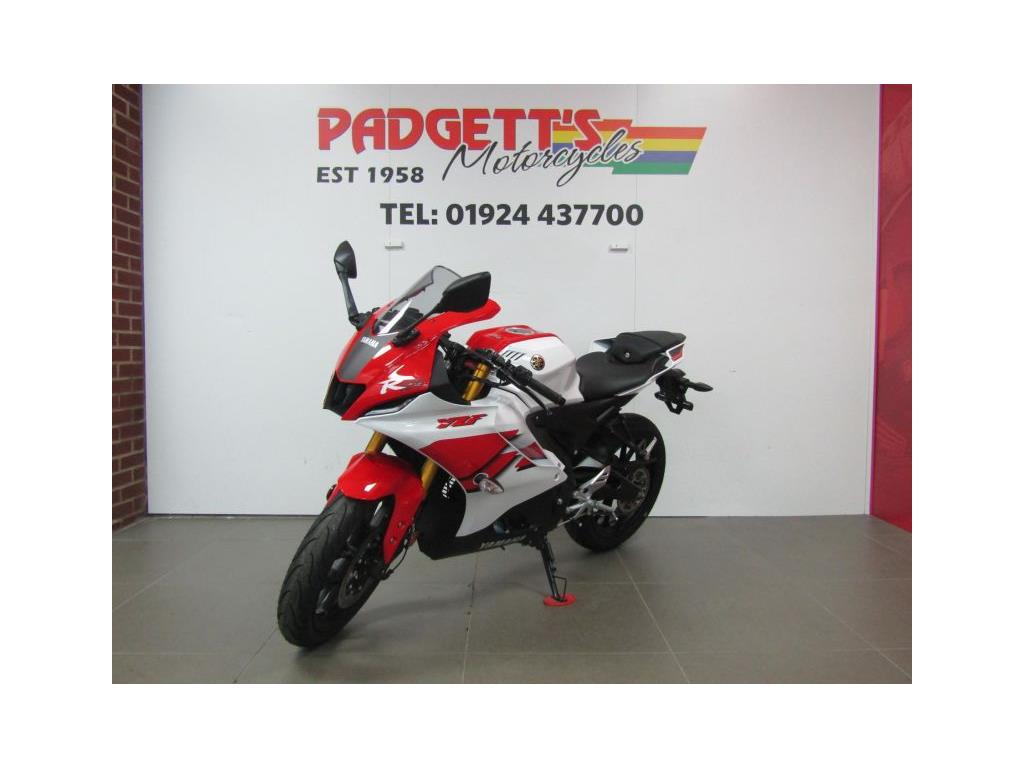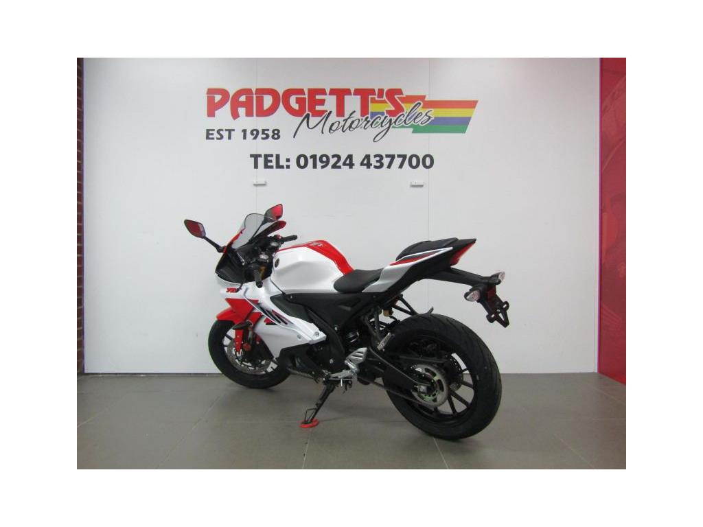 We present here for sale this 2026 Yamaha YZF-R125. Manufactured to a best-in-class specification and featuring pure race-bred engine and chassis technology, the R125 is Yamaha’s ultimate lightweight Supersport. With new graphics as well as a next generation Icon Blue colour scheme that strengthens its R-Series family DNA, this lightweight 125cc Supersport has a serious big-bike attitude. R-Connection. Featuring race-developed Supersport geometry, the Deltabox chassis is equipped with state-of-the-art 41mm KYB upside- down front forks and link-type rear suspension for super- agile handling. The footrest/seat/handlebar layout gives a sporty riding position for optimum control – and smartphone-connected 5-inch TFT instruments keep you informed – and in touch. And equipped with a powerful central LED headlight and dual LED position lights and M- shaped nose, its aggressive new face oozes pure R-Series DNA. For strong performance at all speeds the 125cc 4- stroke engine is equipped with Yamaha’s power-boosting Variable Valve Actuation (VVA) technology and exhaust updates – and the traction control system and assist & slipper clutch enhance controllability when you’re accelerating and decelerating. With a premium finish available in a choice of next generation Icon Blue and Tech Black with new graphics, R125 has everything you need to connect to R/World. The bike is available for viewing and is well worth a look. Finance is available and is subject to status. Part Exchanges welcome. Nationwide delivery can be arranged from as little as £75. Usual Dealer Facilities including a Large range of clothing, helmets & accessories. Call Padgett’s Motorcycles today to ensure that you don’t miss out; Suzuki Sales Centre 01924 609808, Honda Sales Centre 01924 437700 and Yamaha Sales Centre 01924 478491.