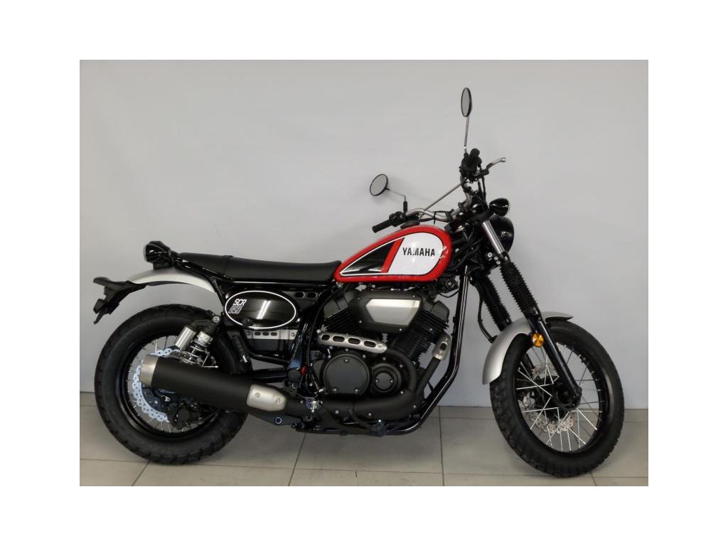 We present here for sale this Yamaha SCR950. IN STOCK NOW!! New and un-registered with ZERO Miles! There’s a new kind of motorcycle on the block. Inspired by the street scramblers of the 1960s, the SCR950 blends authentic design with modern technology to create a new kind of bike that’s about good vibes and cool style. Maybe you’re returning to riding or trading up from a smaller bike? Either way the SCR950’s rugged good looks, natural riding position and timeless style are hard to resist. Built to handle everything from city streets to unpaved trails, this urban scrambler is a great new way to enjoy two wheels. With its pulsating V-twin engine and classic twin shock chassis, this iconic machine captures the spirit of motorcycling, and makes every ride a special occasion. The features of the SCR950 include: – Air-cooled, 942cc, 60-degree, V-twin engine, Flat dual seat with forward riding position, Spoked wheels, aluminium rims, 19″ front/17″ rear, Wide scrambler- style braced steel handlebars, Heavy-duty block-pattern Bridgestone tyres, Steel front and rear fenders, Black coloured engine and components, Flangeless 13.2-litre fuel tank, under-seat storage, Vintage number plate style side panels, Wave-style floating front disc brake, Twin piggyback shocks with model specific settings and 41mm forks with protective gaiter. The bike is available for viewing and is well worth a look. Finance is available and is subject to status. Nationwide delivery can be arranged from as little as £130. Usual Dealer facilities including a Large range of clothing, helmets & accessories. Call Padgett’s Motorcycles today to ensure that you don’t miss out, 01924 478491 or 01924 437700. PLUS £180 OTR FEES