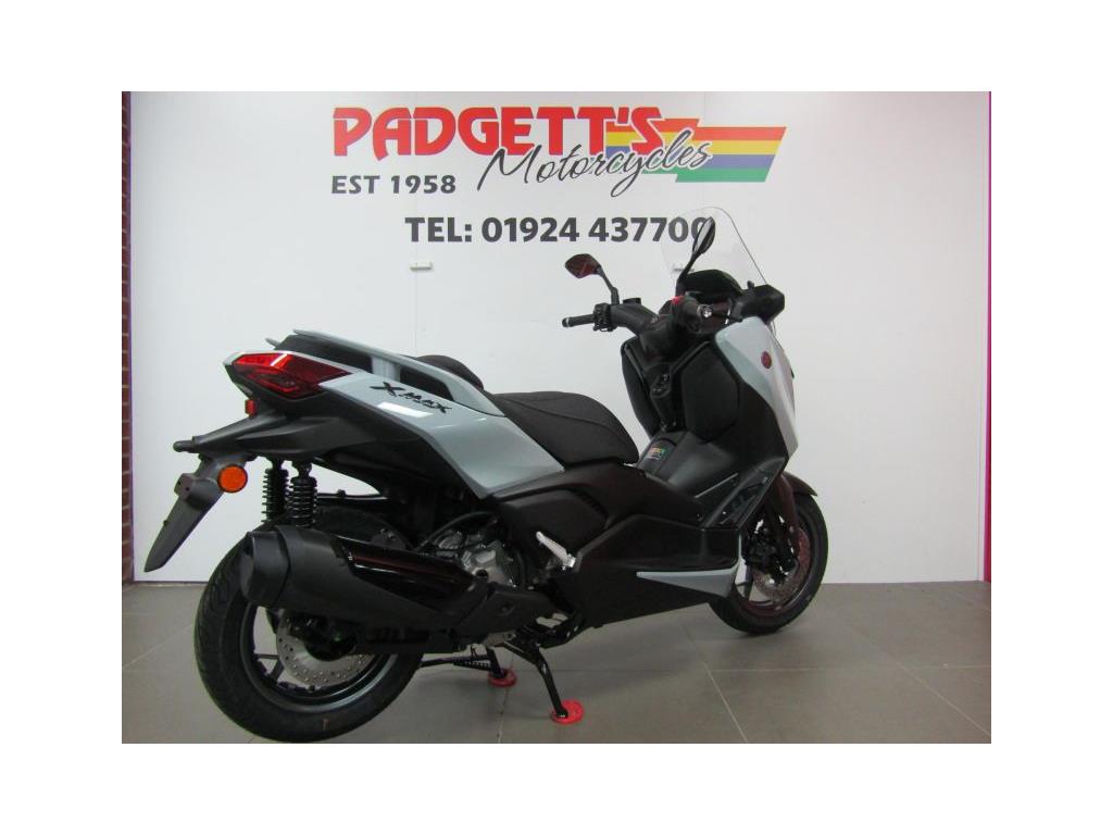 We present here for sale this Yamaha 2025 XMAX 300 TECH MAX. Manufactured with pure MAX DNA and equipped with exclusive heated grips and a heated seat, this is Yamaha’s ultimate 300cc Sport Scooter. With a new shaped screen as well as a restyled dashboard layout and a EURO5+ compliant engine, the dynamic XMAX 300 Tech MAX+ gives you an even more refined ride together with year-round riding comfort. For even greater wind protection the XMAX 300 Tech MAX+ is equipped with an electronically adjustable windscreen that provides 95mm of stepless adjustment – while the redesigned front flasher housing and front spoiler also reduce wind buffeting. Together with the adjustable handlebars and spacious footboards, it’s easy for XMAX 300 Tech MAX+ riders to achieve the ideal set up. The new style dash features an easy-to-read colour 4.2-inch TFT display alongside a 2.8- inch LCD screen. Full connectivity gives you access to free Garmin navigation* via smartphone as well as calls, messages, music and more. And with traction control, ABS and a new Emergency Stop Signal (ESS), XMAX 300 Tech MAX+ is fully equipped for every ride! (*The navigation app will not be available in some countries. Information on speed limits, traffic, etc., is not provided in some countries and regions. Speed limit data may also not be updated in a timely manner and speed limits may change depending on the time of day, such as in school zones or around construction sites.) The bike is available for viewing and is well worth a look. Finance is available and is subject to status. Part Exchanges welcome. Nationwide delivery can be arranged from as little as £75. Usual Dealer Facilities including a Large range of clothing, helmets & accessories. Call Padgett’s Motorcycles today to ensure that you don’t miss out; Suzuki Sales Centre 01924 609808, Honda Sales Centre 01924 437700 and Yamaha Sales Centre 01924 478491.