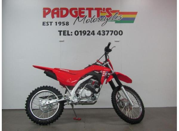 We present here for sale this 2025 Honda CRF125FB. We've got some big guns in our CRF-MX line up and the CRF125F is proud to line up next to them. The perfect entry bike for young riders aged 10, or over, who are looking for fun and a bike to feed their off-road passion. On the CRF125F, young riders can progress to more adventurous riding, safely. With a suspension system built around a beefy 31mm telescopic fork and heavy weight springs, the bike is perfect for soaking up the forces from a jump...
